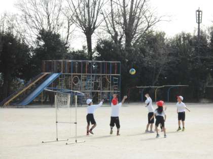 1年生は,体育でパスゲームに取り組んでいます。