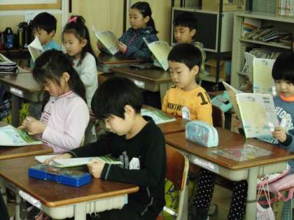 学習のはじめには,音読をします。今日の1組でもみんなで音読をしていました。