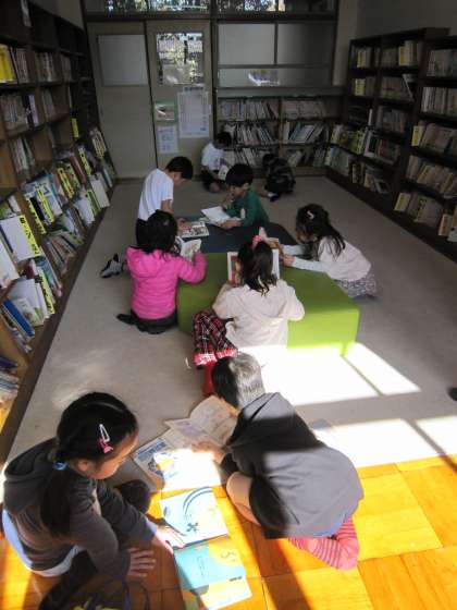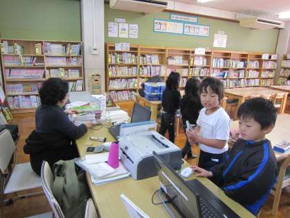 2年1組は,図書室に行って新たに本を借りていました。