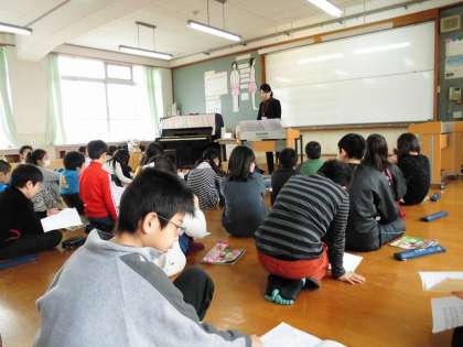 6年生を送る会の全校合唱は学年によって歌うパートが決まっています。あおぞら学級の子たちも歌えるように何度も練習をしています。