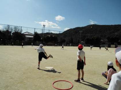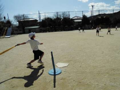 3年生の体育は「ベースボール」です。打つ・投げる・守るが上手になってきて,ますます面白くなってきています。