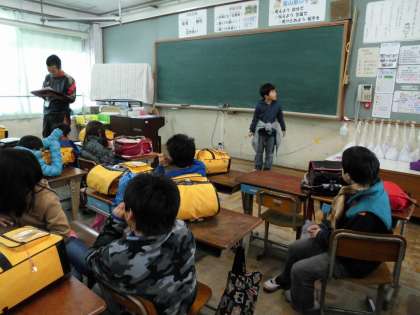 久しぶりに3年2組の終わりの会に参加しました。「明日も笑顔で元気です。」というのが楽しいです。