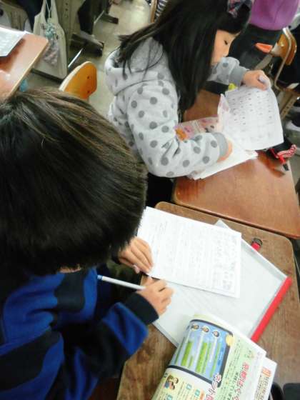 今日は金曜日。各クラスでは来週の予定表が配布されています。ほかに,PTA新聞も家庭数で配布されました。