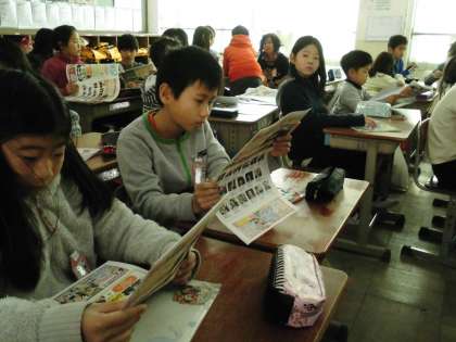 予定表を手にした子ども達は,どんな学習をするのかと見ていました。また,PTA新聞に書かれているケータイについての記事を見ている子たちもいました。