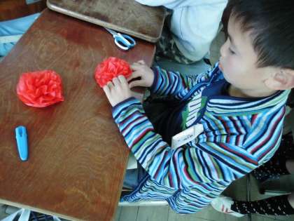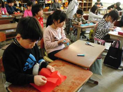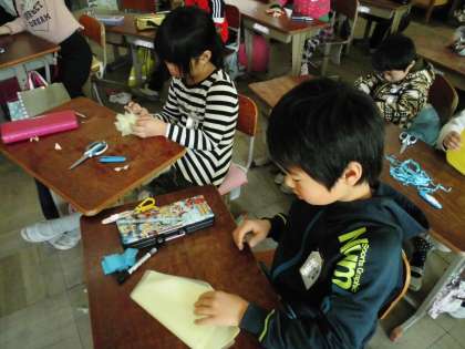 2年2組では,6年生を送る会に向けて「おめでとう」掲示を作成中です。