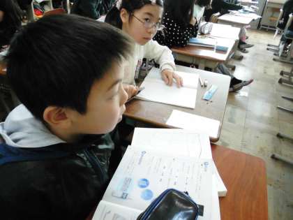 4年2組では,理科で「すがたをかえる水」を学習中です。今日は,映像資料を使ってふりかえりをしていました。