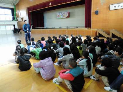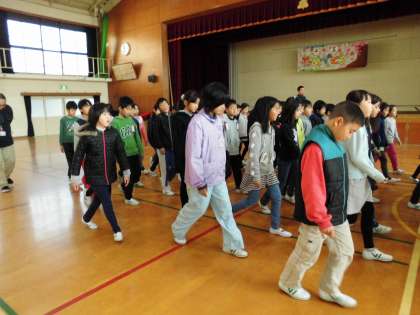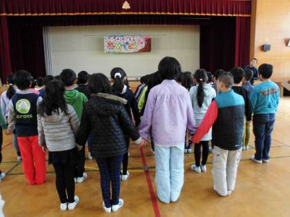 体育館で「すてきな友達」の歌とおくる言葉の練習をしました。きれいな声を届けようという目当てを持ってしました。