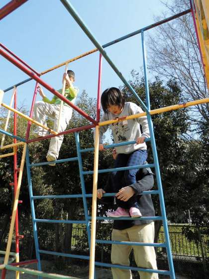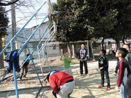5年生の遊びに参加して,一緒にバスケットゴールにシュートをしました。総合遊具では,どこまで登れるか挑戦する子もいました。