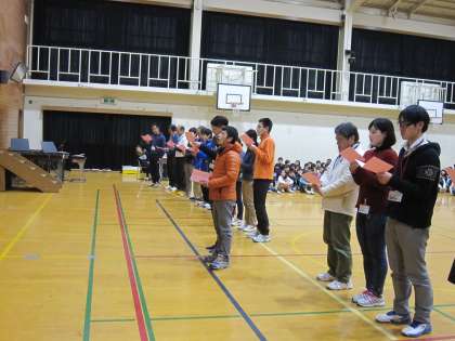 教職員も6年生にお祝いの歌をプレゼントしました。
