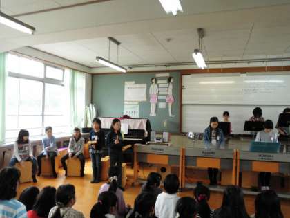曲目は「雨のち晴レルヤ」「ひまわりの約束」「愛をこめて花束を」で日頃の練習の成果を発揮してきれいな音色で演奏や合唱することができました。
