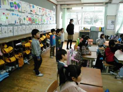 1年生は,これまでの思い出を絵にしようとしています。出来上がった絵は,教室に飾り新入生に見てもらいます。