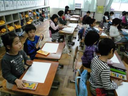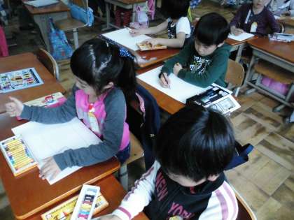 2組では,思い出を出し合い,分担を決めて書き始めようとしていました。