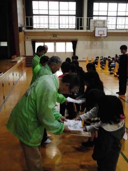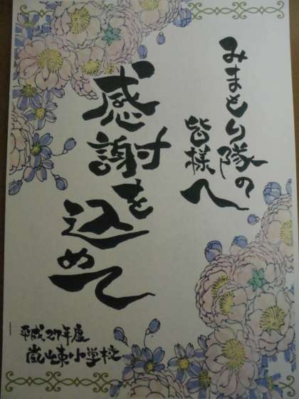 つづいて,6年生の代表の子の「お礼の言葉」と1年生が書いたお礼の手紙を見守り隊の皆さんにお贈りしました。