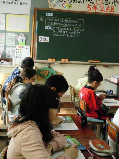 5年2組では,社会科で「きれいになった環境を守るためにどんな取り組みがなされているのだろうか」という課題で学習していました。