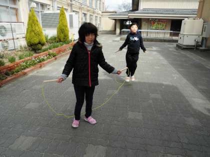 中間休みに縄跳びをしています。朝休みもしているので,ずいぶん上手に跳べるようになってきています。