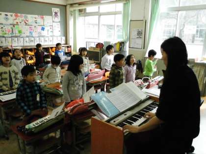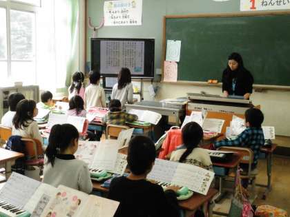1年1組では,「校歌」の練習をしていました。