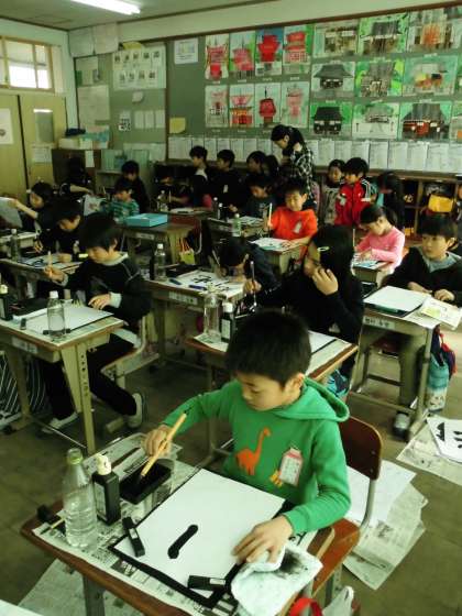 習字も3年生から始まる学習の一つです。3年1組の学習風景を見学させてもらいました。