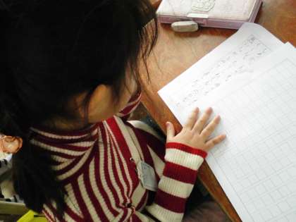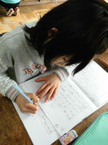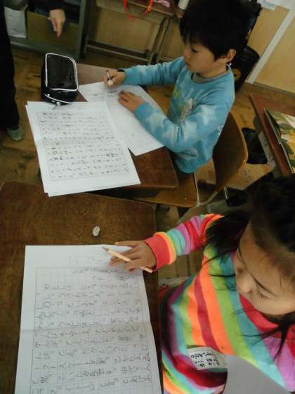 2年1組では,国語の時間に「楽しかったよ 二年生」の作文の続きを書いていました。