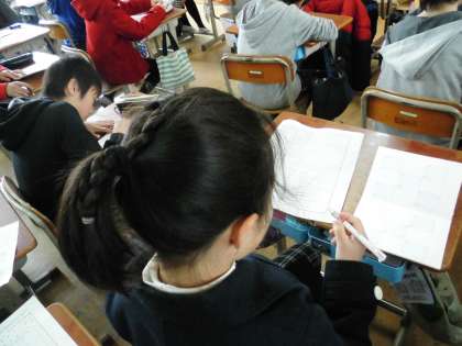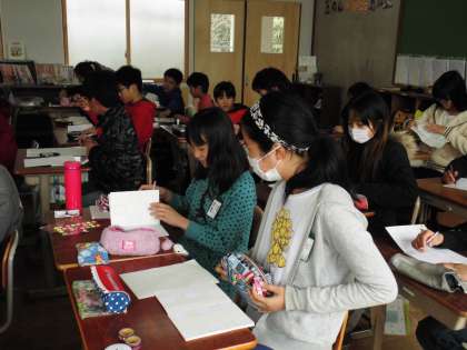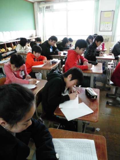 6年1組では,友達へのメッセージを書いていました。