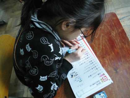 5年2組では,漢字ドリルで新しい漢字の練習をしてきました。