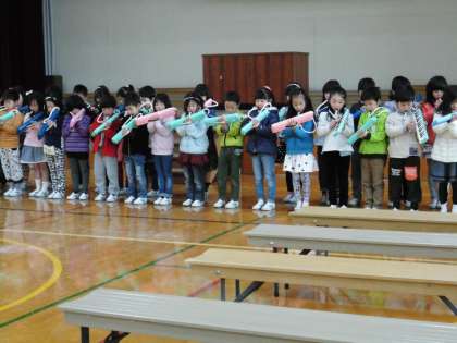 言葉だけでなく,鍵盤ハーモニカの演奏もします。この「おむかえのことば」の練習もしていました。
