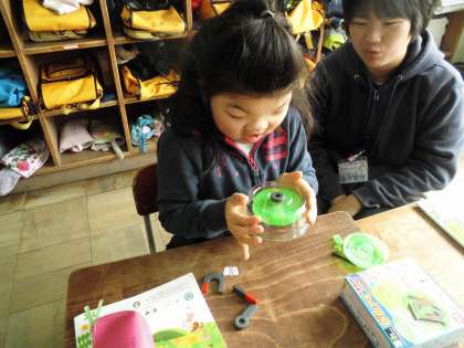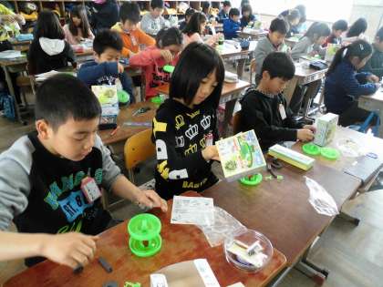 3年生の理科は,磁石のセットを使って,磁石の性質を活用したおもちゃを作って楽しみました。