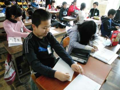 5年1組では,漢字小テストの○付けの終わった用紙を整理していました。
