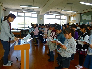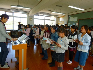 子どもたちからも,卒業式に歌った歌を披露した後,全体で「つばさをください」という曲を歌いました。強弱に気をつけながら歌おうとする姿が見られました。