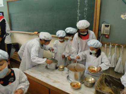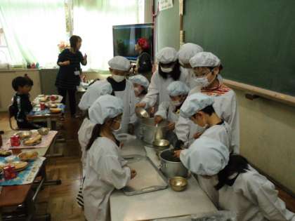 そして,ご飯やおかずを配膳するやり方を6年生のお兄さんやお姉さんに教えてもらいました。
