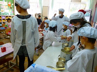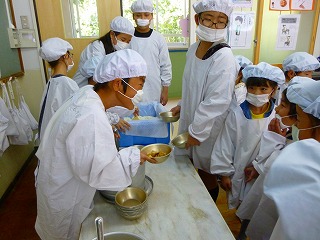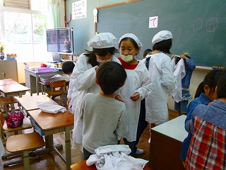 1年生も,自分達の力でやろうと頑張っています。6年生が全てを助けるのではなく,できることは自分でできるように,考えながら手助けをしていました。