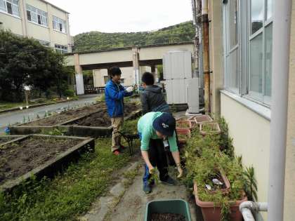 昨年度の栽培委員さんが,プランターの雑草を抜いてきれいに後始末をしてくれています。