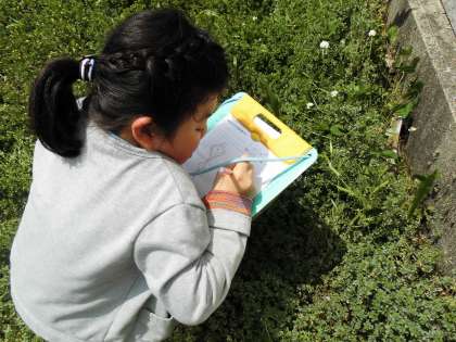 4年生の理科は,春の植物の観察をしました。ワークシートの見たことをしっかり書いていました。
