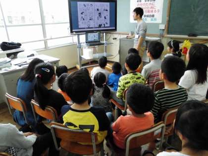 4年生に総合的な学習は,映像を見ながら最新の技術和開発した人やその功績について知り,感想ともっと知りたいことを話し合いました。