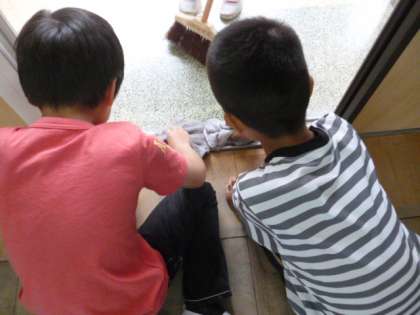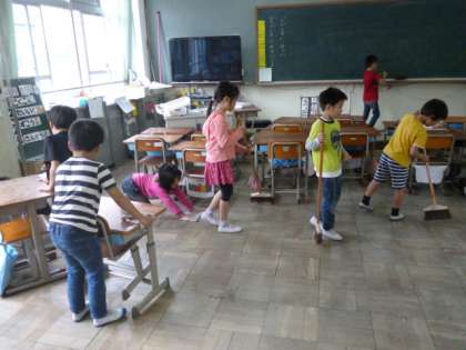 5月に向け,毎日掃除場所を変えながら,掃除のやり方を学んでいます。