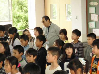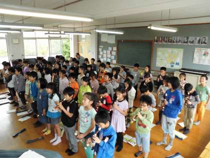 4年生は,「子供の世界」歌とリコーダーで練習しています。