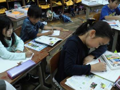 3年2組では6時間目,国語の漢字練習と社会の紹介カードを作成しました。