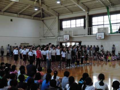 6年生は組体操を取り入れながら,学校生活の様子をコミカルに表現し,赤い鳥の名曲「翼をください」をきれいな声で歌っていました。