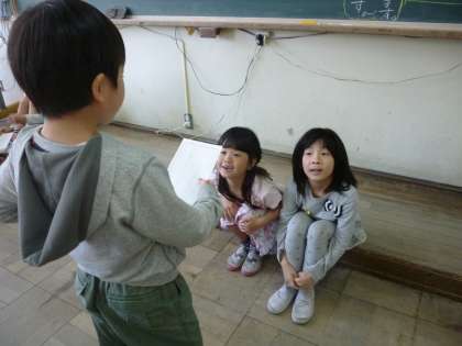 1時間目は国語で「自分が伝えたいことを伝えたり,感想をかえしたりしよう」をめあてに行いました。