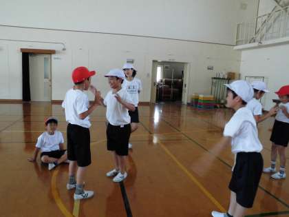 すもう遊びは,けんけん相撲と押し相撲です。チャンピョン大会は盛り上がりました。