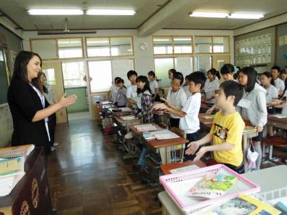 5年2組は,ALTと一緒に英語の歌を歌ったり,挨拶をしたりしました。