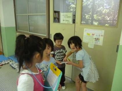 探検をする場所まで移動をし,2年生がその場所の説明をします。