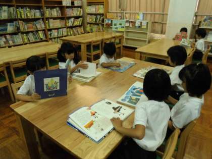 5月16日(月)1時間目図書室で読書しました。図書の貸し出しの仕方を教えてもらっていたので,自分の読みたい本を借りることができました。