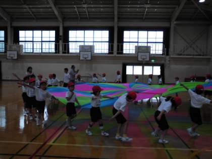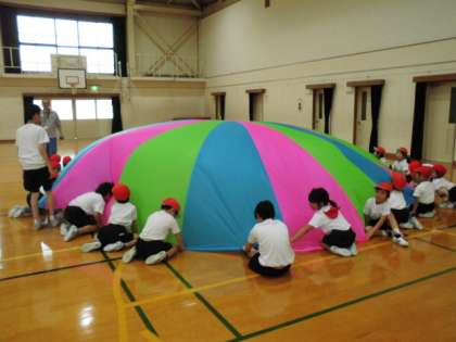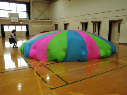 「夢日和」の曲に合わせて,左右に回ったり,円を小さくしたり大きくしたりする動きがありますが,なんといっても最大の見せ場は,ドームを作って中に入り込む場面です。