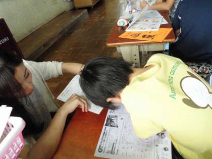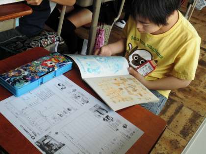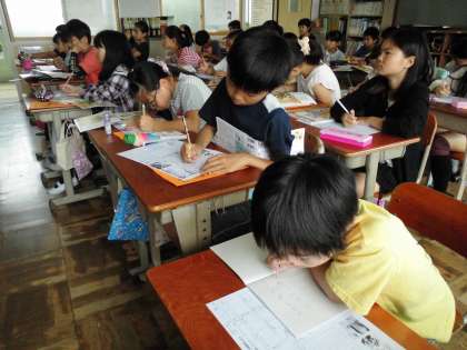 5年2組で家庭科の学習をしました。調理実習前の準備です。