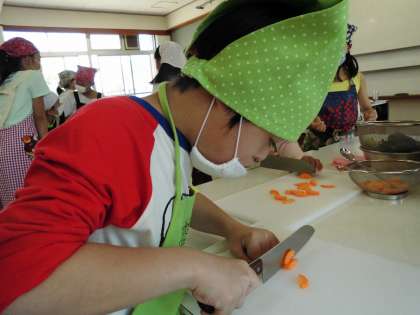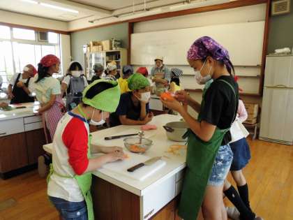 5年2組は,野菜サラダを作りました。グループで役割分担して準備や野菜を切りました。