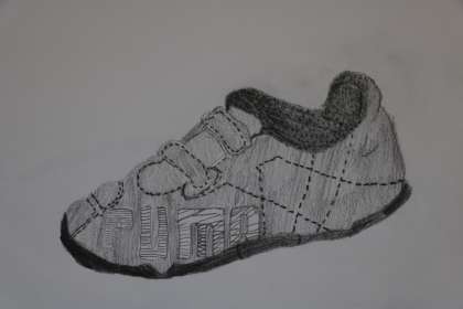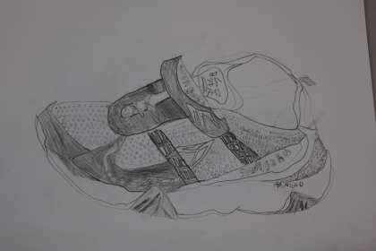 図工の学習では,鉛筆を使って,鉛筆の濃淡だけで,靴を描きました。形をしっかりと取ることに苦戦していましたが,がんばって描きあげる事ができました。
