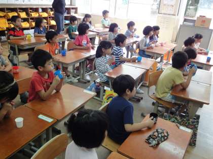 4月当初に比べると,「ブクブク」も少し上手にできるようになってきた1年生です。