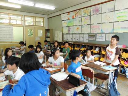 4年生は,国語で話合いの仕方を学習しています。今日は,机の向きを変えてしました。