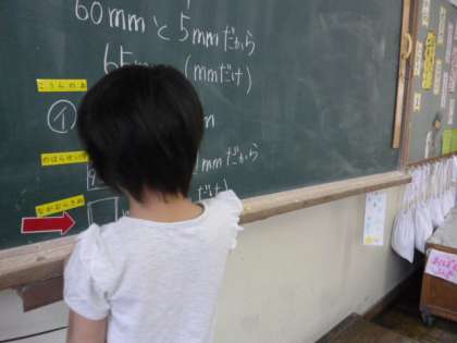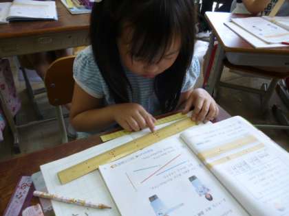 算数では,30センチメートルものさしを使って長さをはかる学習をしています。