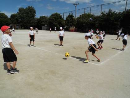 4年1組は,ポートボールの学習に入ります。まずは,パスの練習です。